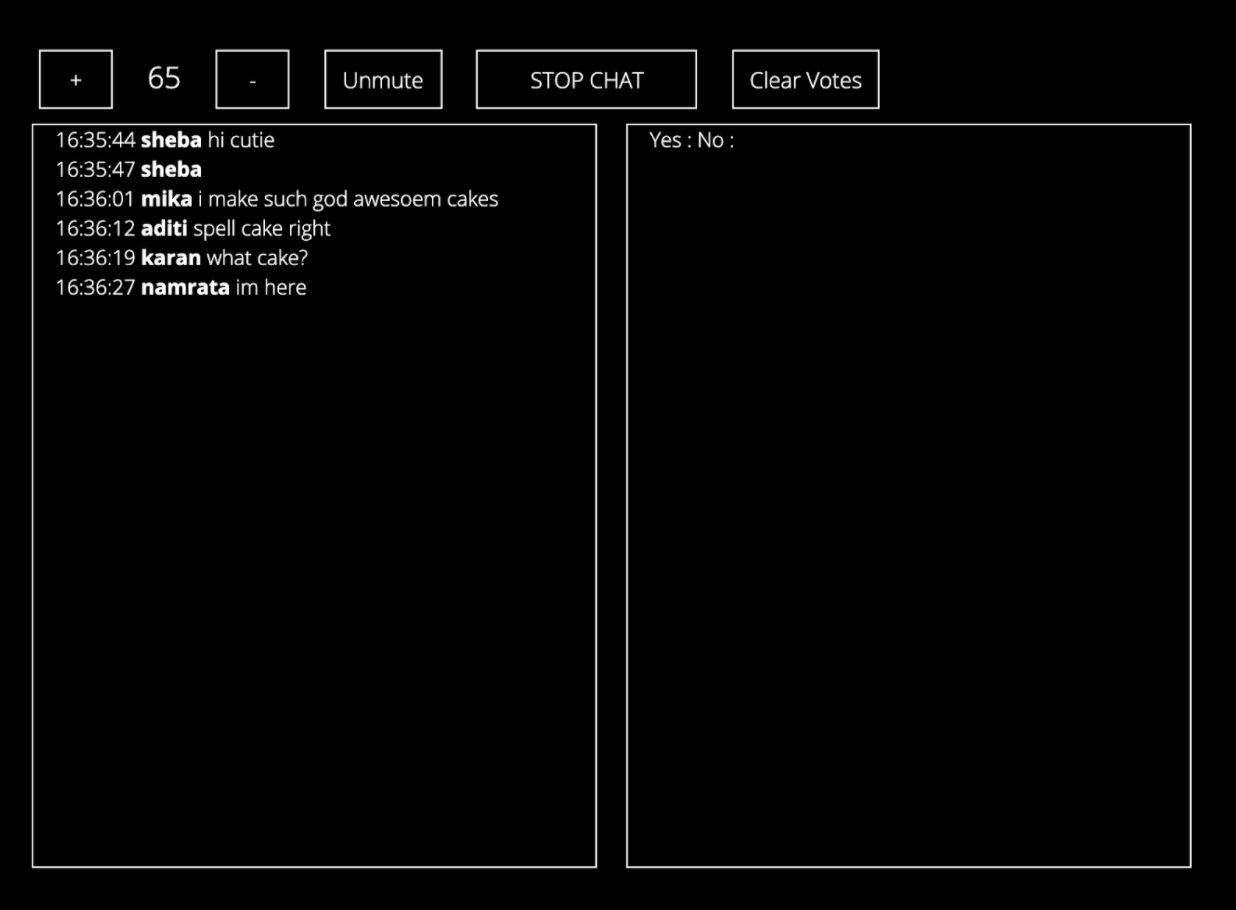 To facilitate easy interaction between the audience and the performers, our player contains a live chat where participants can send in their comments, thoughts and questions and talk to each other. This chat can be turned on and off through the dashboard as and when convenient for the performance. This feature allows constant communication with audiences and an opportunity for interactive elements within your narrative.